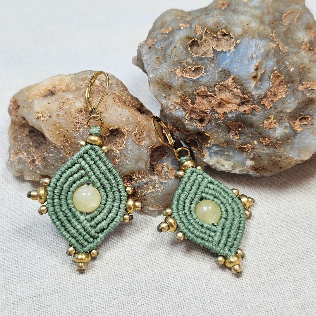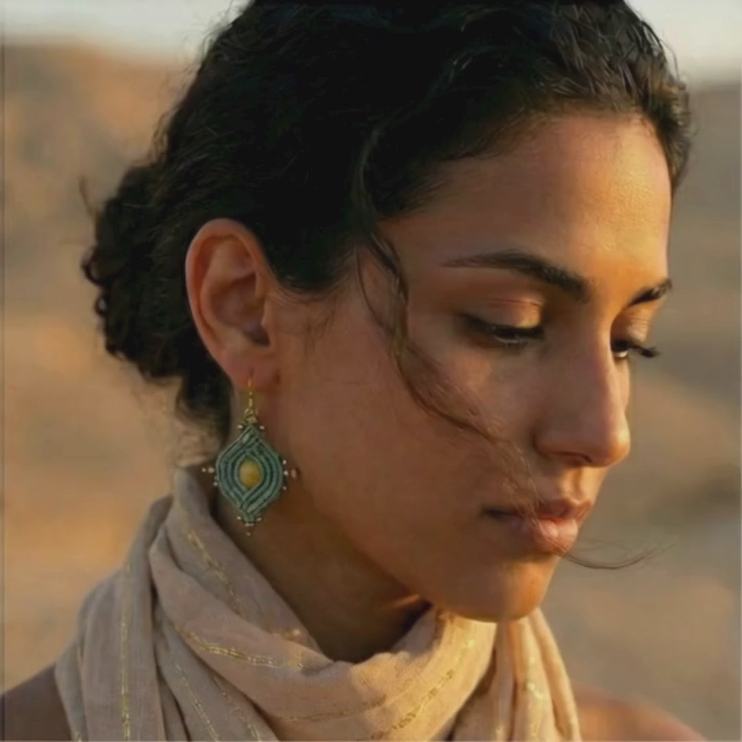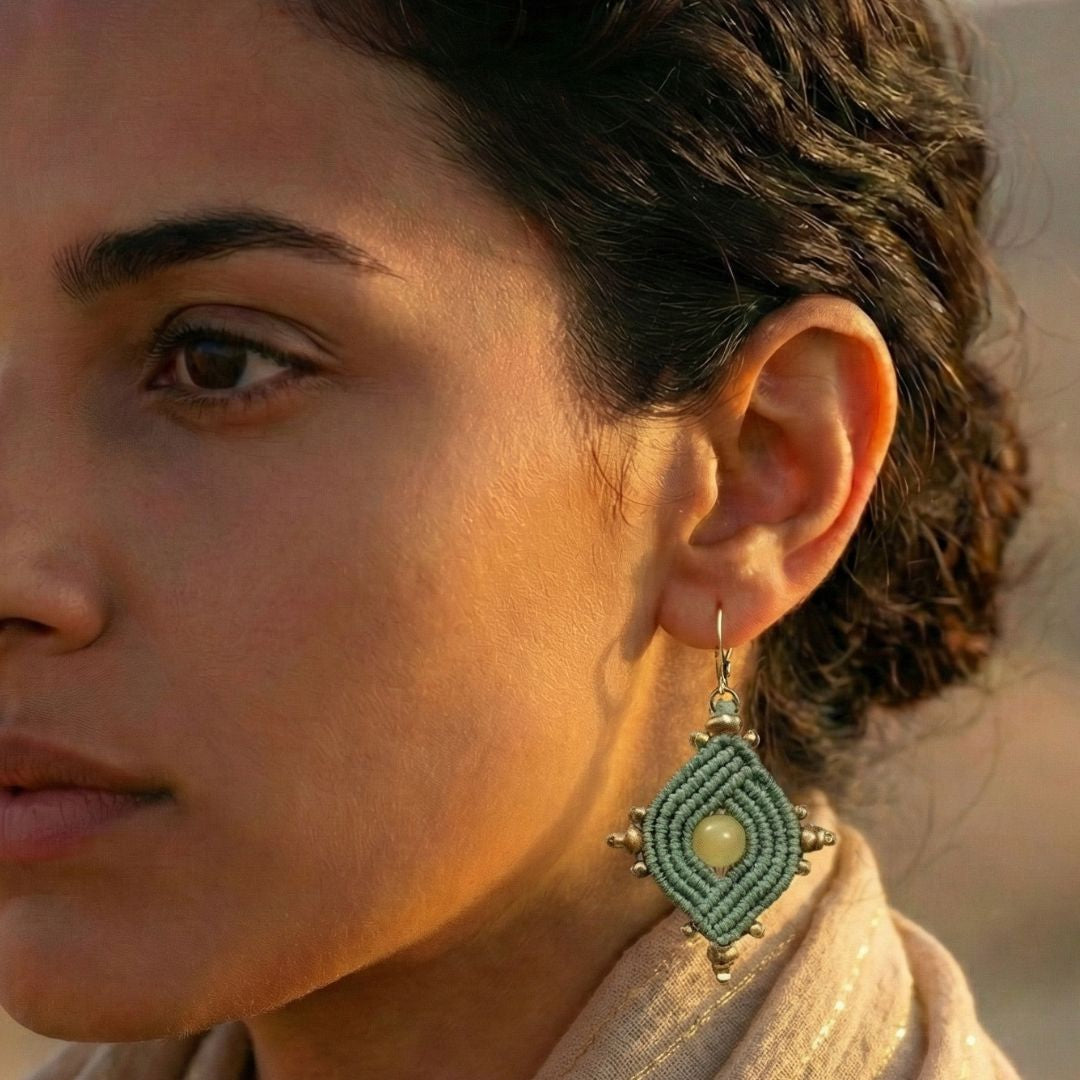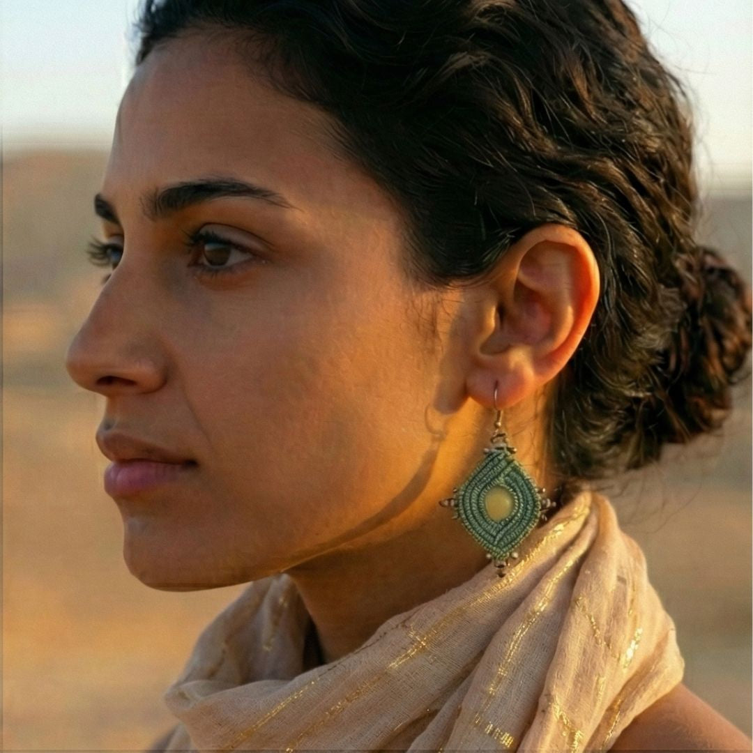 עגילי 'הופי' ירוק מרווה וסיטרין