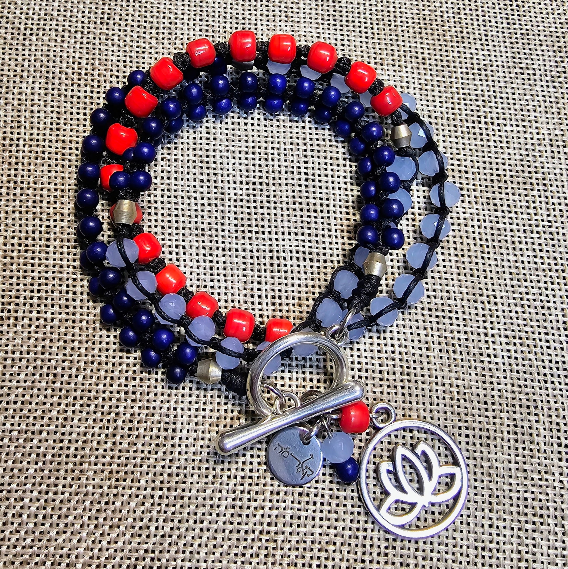 צבע, אנרגיה ותנועה חופשית מתמזגים בצמיד 'ברזיל' עם תליון לוטוס. חרוזי זכוכית צבעוניים, היולייט וקריסטלים נוצצים נשזרים בקשירות מקרמה ליצירת תכשיט מלא חיים ונוכחות. הצמיד מתלפף שלוש פעמים סביב פרק היד ויכול לשמש גם כשרשרת צבעונית. הסוגר הקדמי מדגם T ותליון הלוטוס בציפוי כסף משלימים את העיצוב בסמליות של צמיחה, התחדשות וחיבור פנימי.